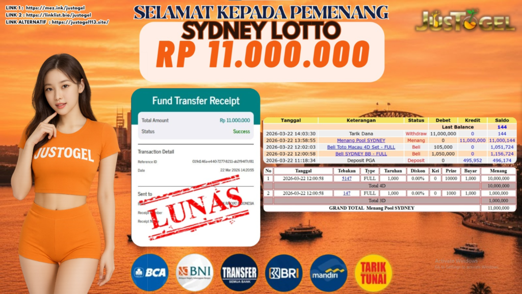 Selamat kepada User ID : IBR***M27 Telah berhasil mendapatkan kemenangan besar pada Permainan JP SLOT SWEET BONANZA 1000 Dengan kemenangan Sebesar Rp. 16.000.000,- Setelah mengisi formulir withdraw dengan kurung waktu hanya 5-10 menit pihak JUSTOGEL sudah melakukan transfer kepada pemilik User ID dan dana sudah dapat di cairkan oleh pemenang. Bukti pembayaran yang kami berikan merupakan bukti pembayaran yang SAH / VALID yang langung di dapatkan melaui tanda transfer transaksi dari Bank yang di tuju.