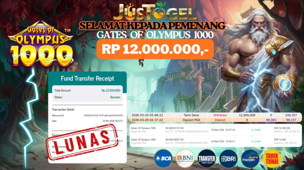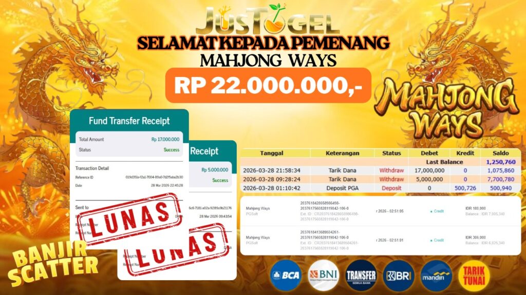 Selamat kepada User ID : UR***AIT Telah berhasil mendapatkan kemenangan besar pada Permainan JP SLOT WILD BANDITO Dengan kemenangan Sebesar Rp. 11.500.000,- Setelah mengisi formulir withdraw dengan kurung waktu hanya 5-10 menit pihak JUSTOGEL sudah melakukan transfer kepada pemilik User ID dan dana sudah dapat di cairkan oleh pemenang. Bukti pembayaran yang kami berikan merupakan bukti pembayaran yang SAH / VALID yang langung di dapatkan melaui tanda transfer transaksi dari Bank yang di tuju.
