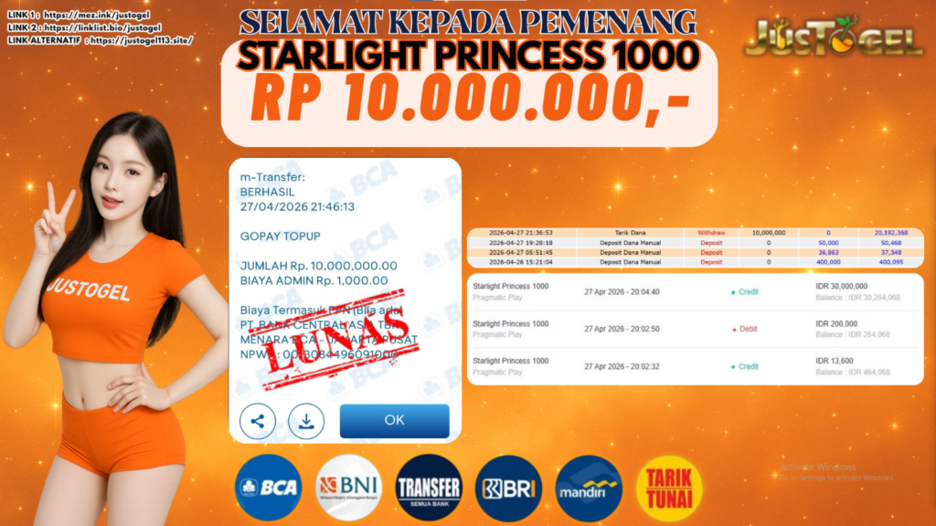 Selamat kepada User ID : AR***MQMTelah berhasil mendapatkan kemenangan besar pada Permainan JP SLOT GATES OF OLYMPUS SUPER SCATTER Dengan kemenangan Sebesar Rp. 14.400.000,- Setelah mengisi formulir withdraw dengan kurung waktu hanya 5-10 menit pihak JUSTOGEL sudah melakukan transfer kepada pemilik User ID dan dana sudah dapat di cairkan oleh pemenang. Bukti pembayaran yang kami berikan merupakan bukti pembayaran yang SAH / VALID yang langung di dapatkan melaui tanda transfer transaksi dari Bank yang di tuju.